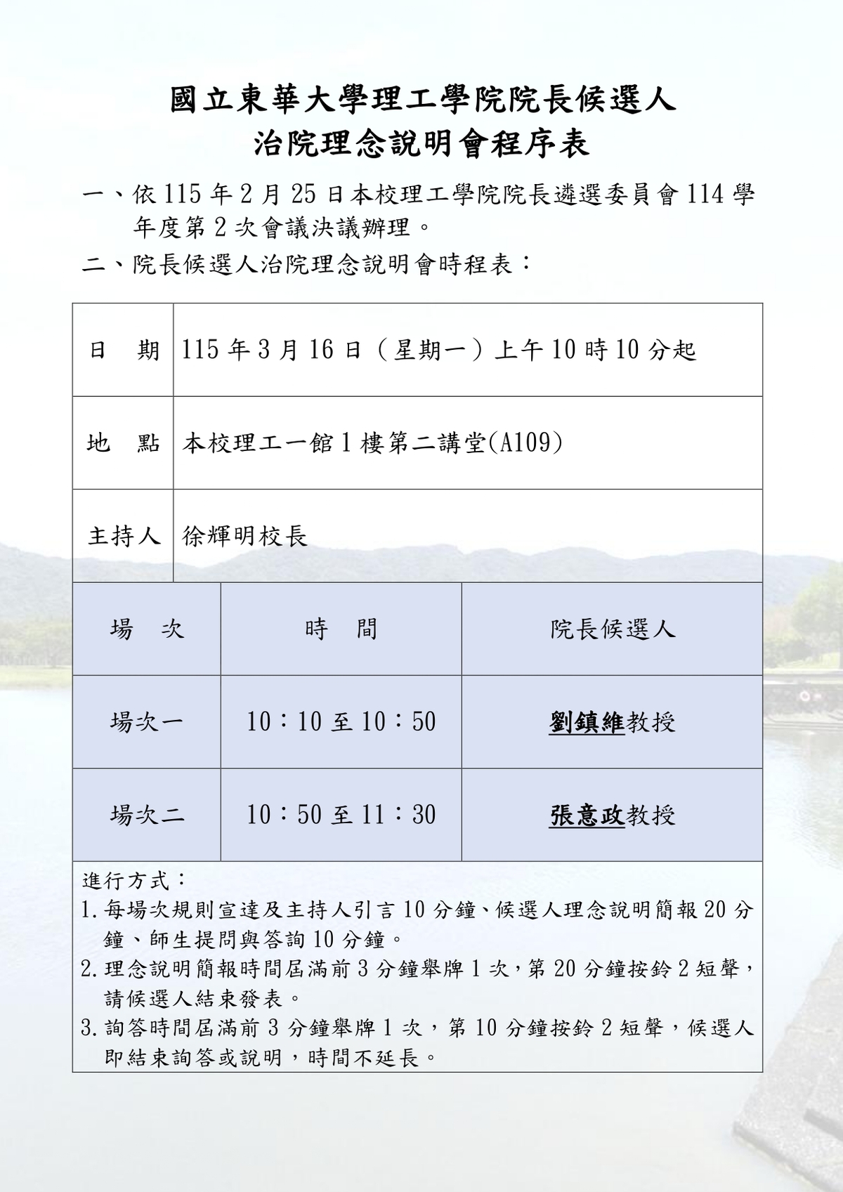 (一)時 間:115年3月16日(星期一)上午10時10分起。